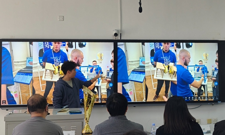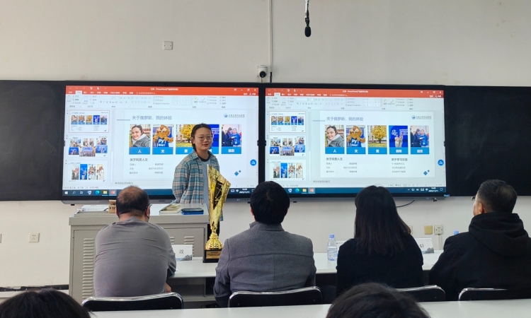 在参赛分享环节,任政老师分享了指导心得,感谢学校提供的支持与平台,并向俄方指导教师和工作人员表示诚挚谢意。获奖学生代表李任超、孟姝一帆、孙玉玉同学依此分享了俄罗斯竞赛见闻。他们提到,这项竞赛与国内模式不同,现场直接给出问题,重点考察团队分析问题的完整过程而非单纯提供解决方案。竞赛期间,俄方带队教师和FESCO公司给予了极大支持,他们耐心沟通和细致答疑为我们提供了重要帮助。